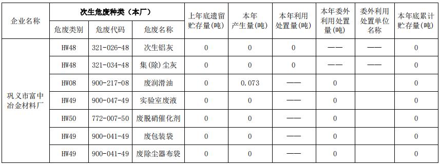 鞏義市富中冶金材料廠——危險廢物經(jīng)營信息公開表
